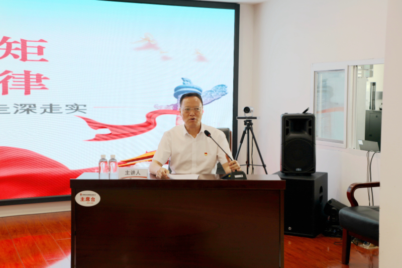 聚焦深入學(xué)習(xí)貫徹習(xí)近平總書記關(guān)于全面加強(qiáng)黨的紀(jì)律建設(shè)重要論述,推動(dòng)黨紀(jì)學(xué)習(xí)教育走深走實(shí),增強(qiáng)廣大黨員干部學(xué)紀(jì)知紀(jì)明紀(jì)守紀(jì)的堅(jiān)定自覺,6月26日,公司黨委書記、董事長張超暉以“學(xué)黨紀(jì),知規(guī)矩,守紅線,講紀(jì)律,全力推動(dòng)公司黨紀(jì)學(xué)習(xí)教育走深走實(shí)”為題講授黨紀(jì)學(xué)習(xí)教育專題黨課。公司領(lǐng)導(dǎo)班子成員、機(jī)關(guān)中層管理人員、所屬企業(yè)領(lǐng)導(dǎo)班子成員、機(jī)關(guān)黨員及基層單位黨群工作部、紀(jì)檢部門負(fù)責(zé)人等共90余人參加。