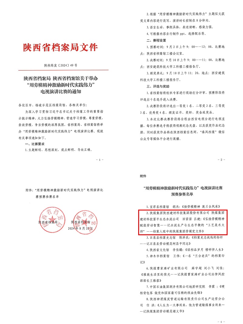 據悉,此次活動為以檔案人視角大力弘揚勞模精神,營造學習勞模、尊重勞模、崇尚勞模、爭當勞模的濃厚氛圍。比賽決賽階段將全程由西安電視臺進行電視直播,同時獲獎作品將在陜西檔案信息網、“秦風檔案”微信公眾號等媒體平臺進行展播。
