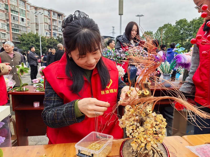 學雷鋒紀念日來臨之際,陜渝建材公司志愿者來到興隆街社區“情暖關壩 愛滿興隆——鄰里互助集市”活動現場開展志愿服務活動。幫助殘疾人制作、義賣工藝品,為居民發放各類宣傳資料,維護活動秩序。